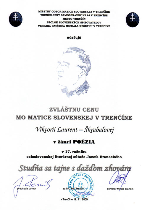 • Krídla Ivana Laučíka 2009, Jozefa Braneckého Studňa 2009 a Gerbocová Literárna Snina 2009
