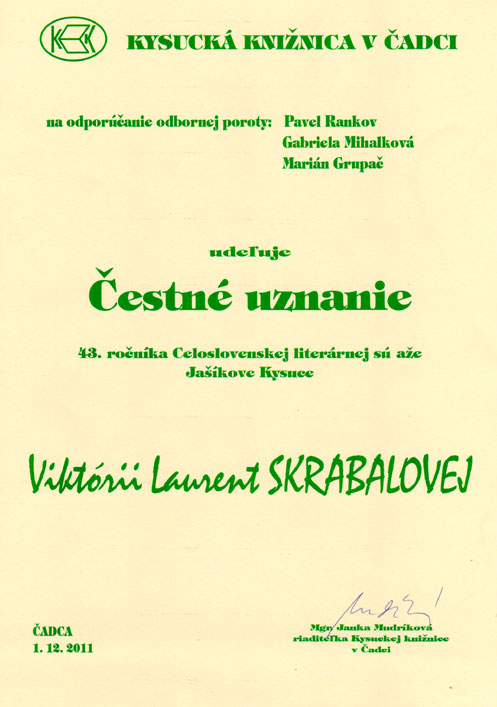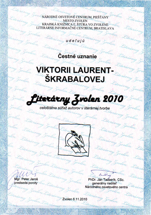 • Literárny Zvolen 2010, Jašíkove Kysuce 2011 a Slovenského Učeného Tovarišstva 2013